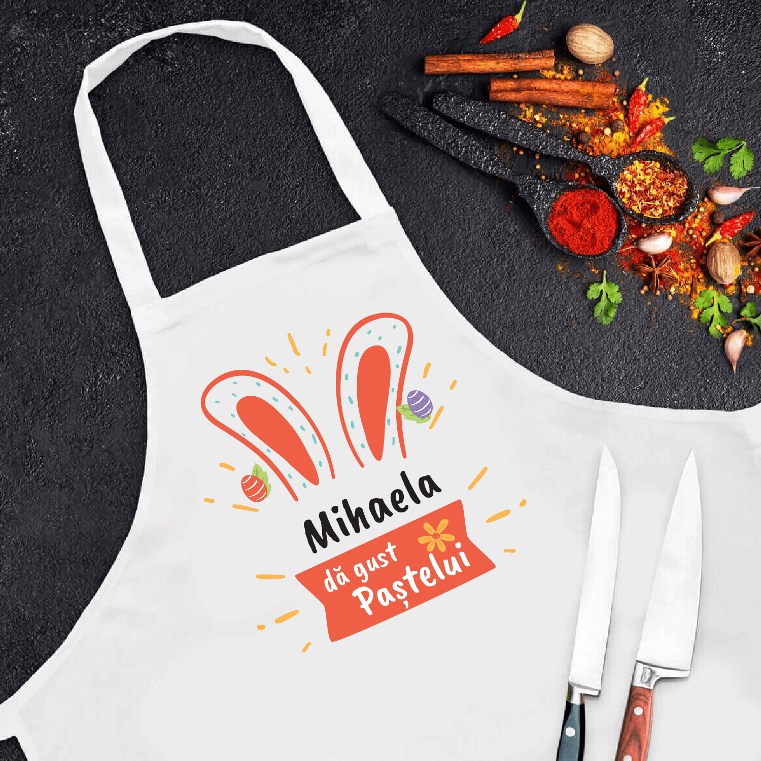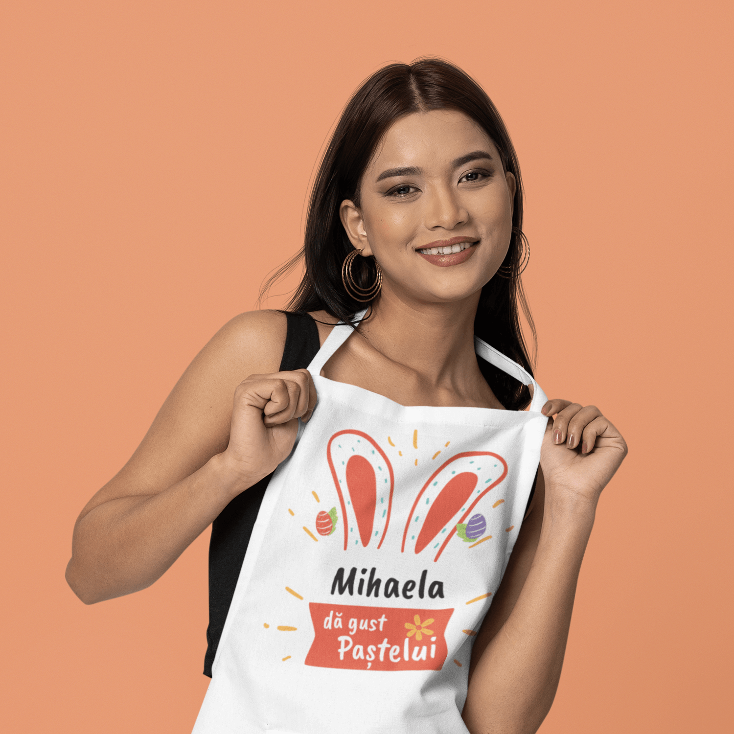 Dacă ești în căutarea unui cadou util, personal și inedit, îți propunem un Șorț Personalizat cu nume, pentru Paște.