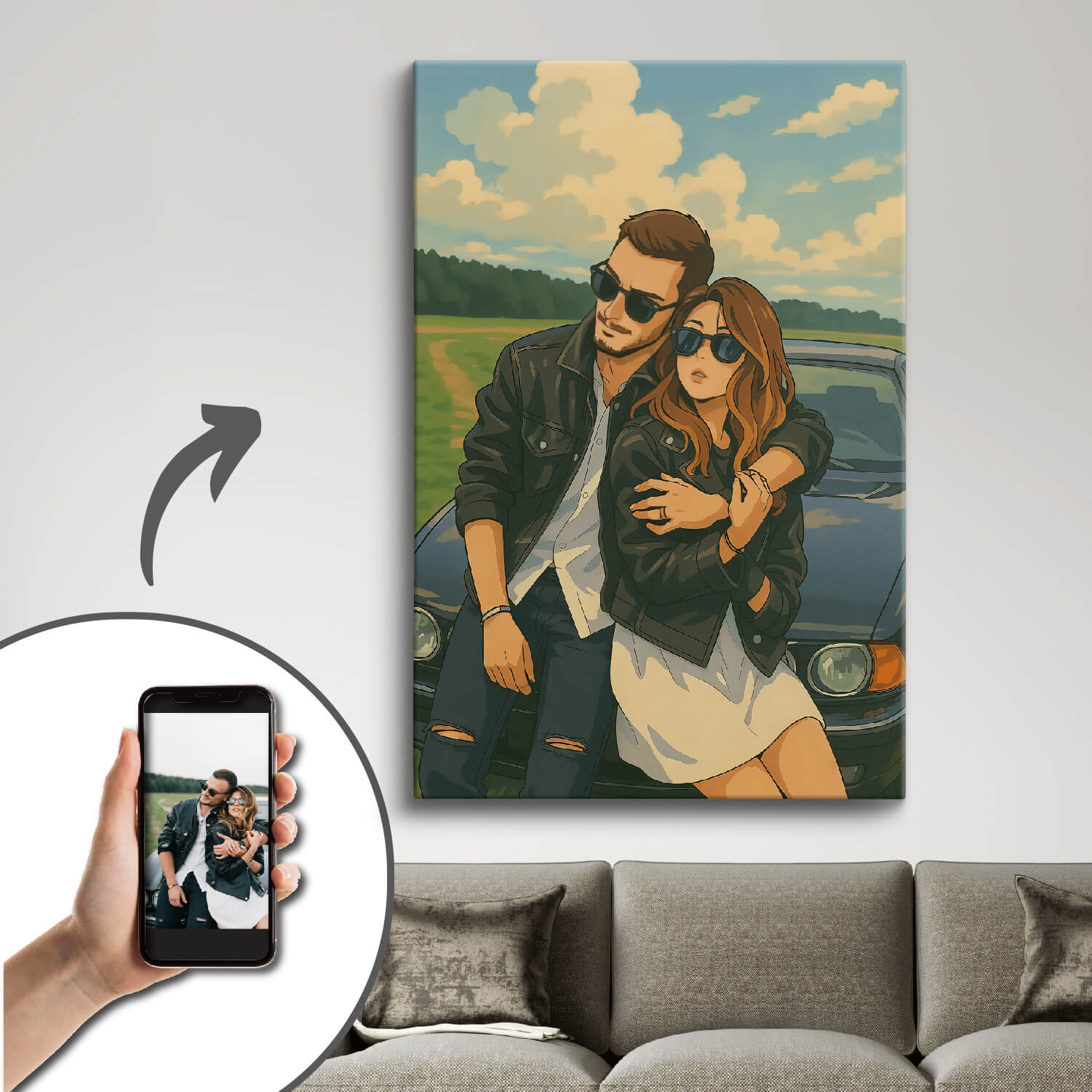 Transformă o amintire prețioasă într-o operă de artă cu tabloul canvas Cartoon Effect. Îți oferim posibilitatea de a crea un portret unic, dintr-o fotografie personală, transformată digital într-un desen realist în stil cartoon, cu detalii fine și expresivitate. Va adăuga o notă elegantă în orice spațiu din casa ta.