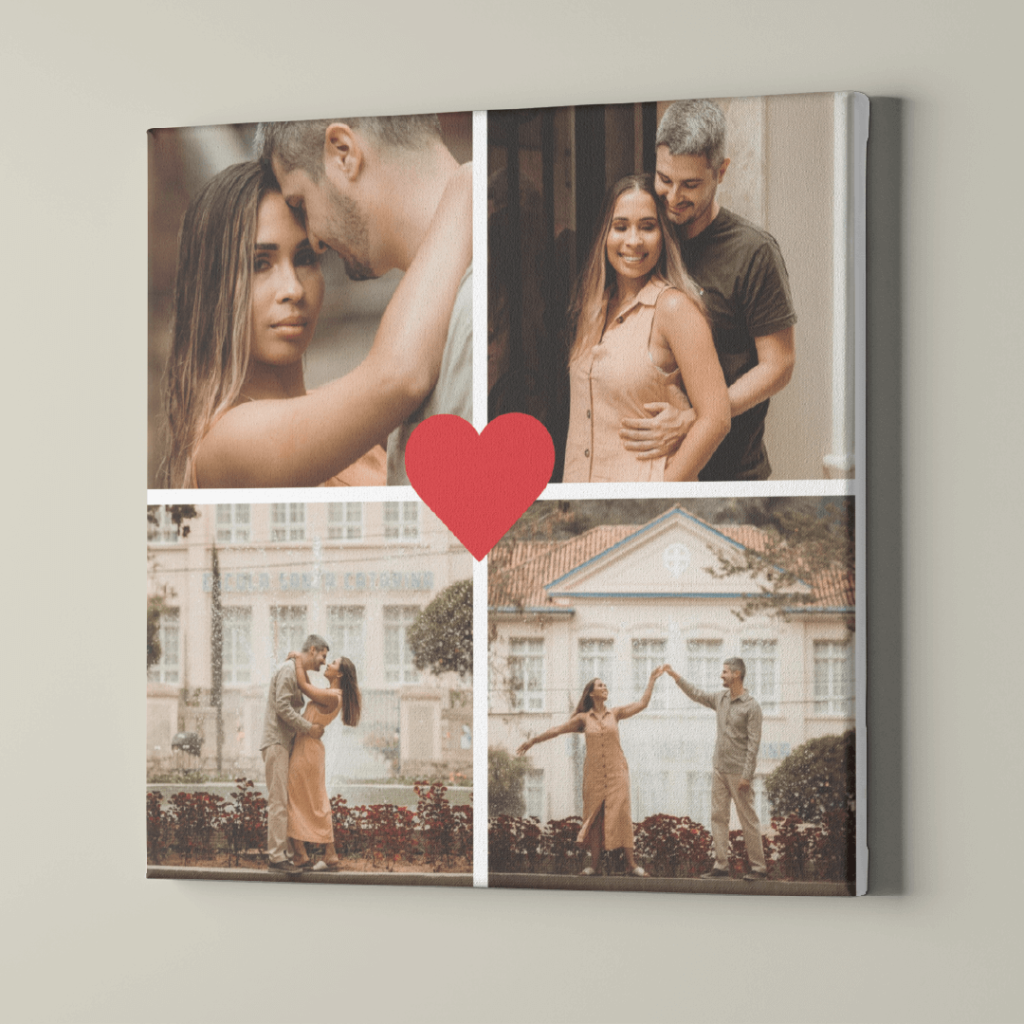 Tablou Canvas Pătrat Personalizat cu 4 poze – Inimă