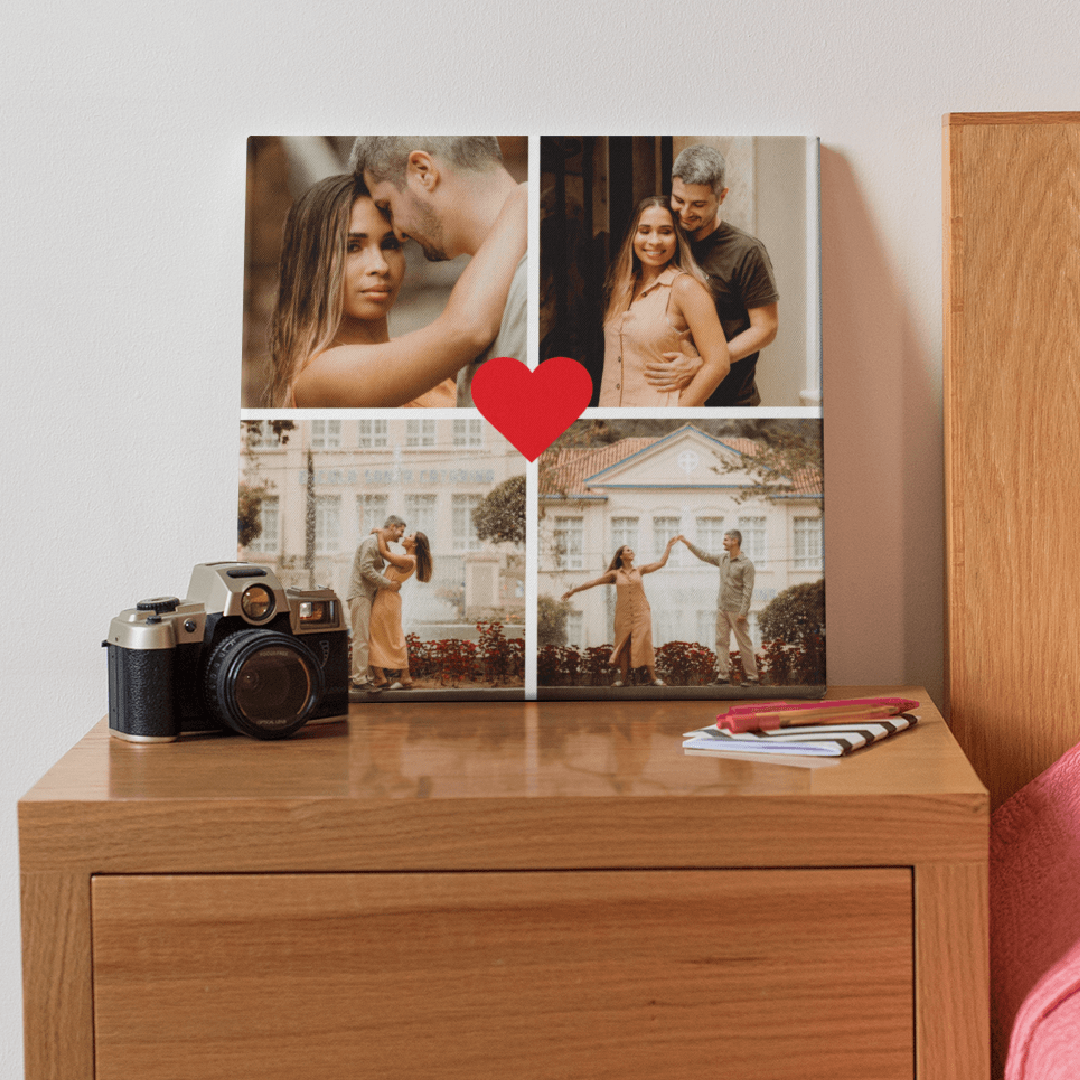 Tablou Canvas Pătrat Personalizat cu 4 poze – Inimă