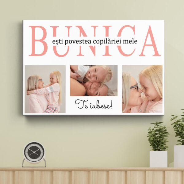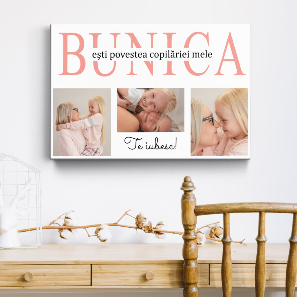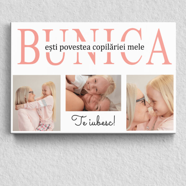 Tablou Canvas pentru Bunica – Personalizat cu 3 poze și mesaj