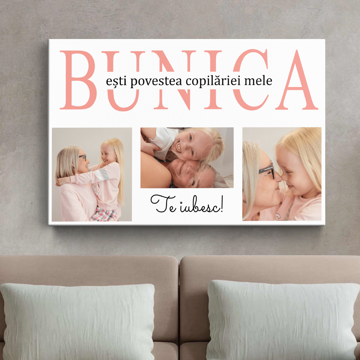 Tablou Canvas pentru Bunica – Personalizat cu 3 poze și mesaj – Diferite Dimensiuni