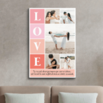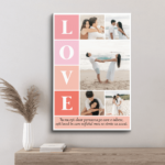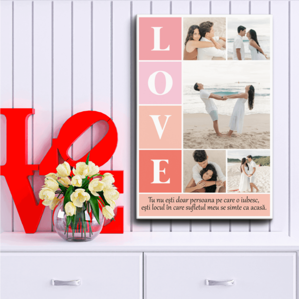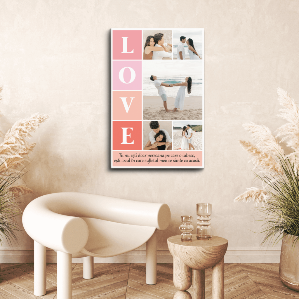 Tablou Canvas Personalizat cu 5 poze și mesaj, Love – un cadou elegant, perfect pentru evenimente speciale și momente de neuitat!