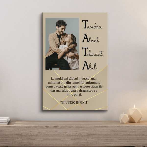 Tablou Canvas Personalizat pentru Tata, cu poză și mesaj – perfect pentru evenimentele speciale și momente de neuitat!