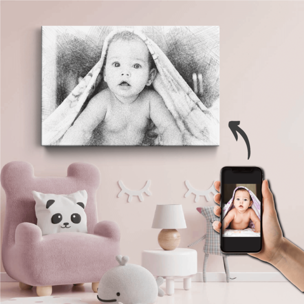 Transformă o amintire prețioasă într-o operă de artă cu tabloul canvas portret în creion digital. Îți oferim posibilitatea de a crea un portret unic, dintr-o fotografie personală, transformată digital într-un desen realist în creion, cu detalii fine și expresivitate. Va adăuga o notă elegantă în orice spațiu din casa ta.