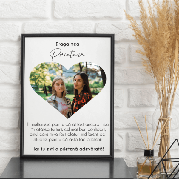 Cauți un cadou pentru prietena ta? Ce spui de un tablou personalizat pentru cu poza voastră preferată și cu un mesaj simbolic prin care să îi transmiți toată recunoștința ta…