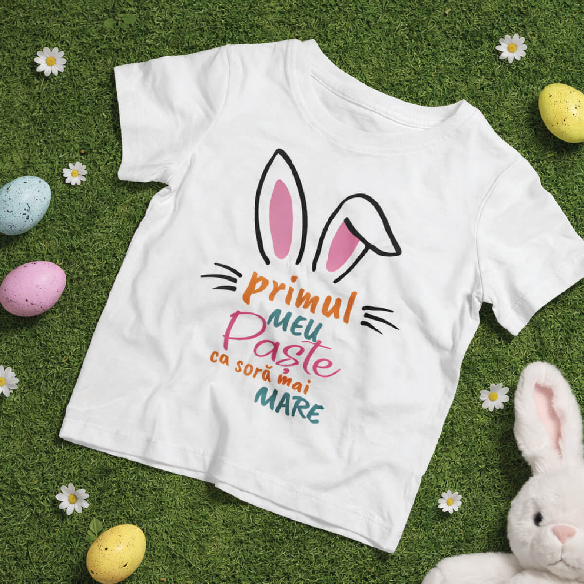 Imortalizează cele mai dragi momente și creează amintiri de poveste cu un tricou personalizat tematic, Primul Paște ca soră mai mare.